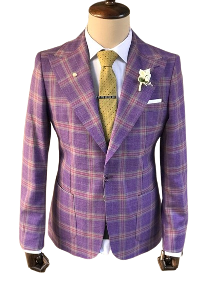 With a rich purple plaid finish, golden tie combo, and signature white floral pin, this blazer was crafted for Eze-level presence at high-end events. It speaks elegance and energy — perfect for traditional wedding guests, red carpet step-outs, and pre-wedding shoots. Whether you dey pop champagne at a Banana Island mansion or walking into The George in Ikoyi, this blazer no dey whisper style… it declares it.